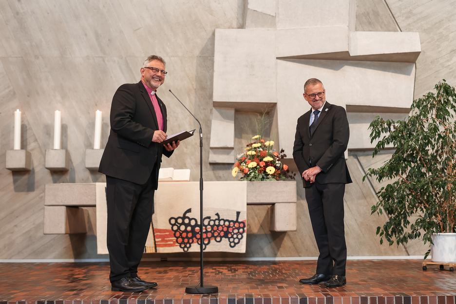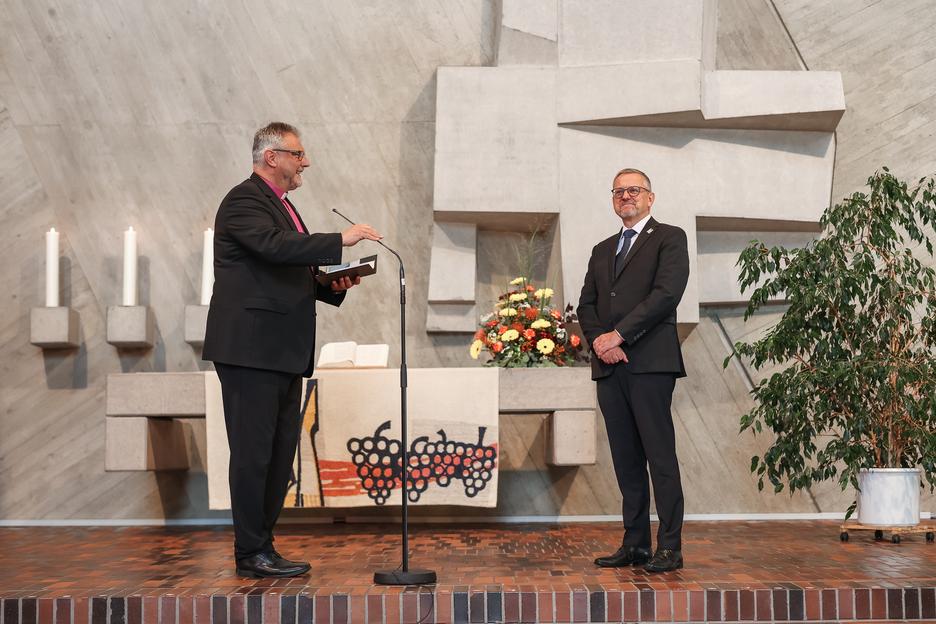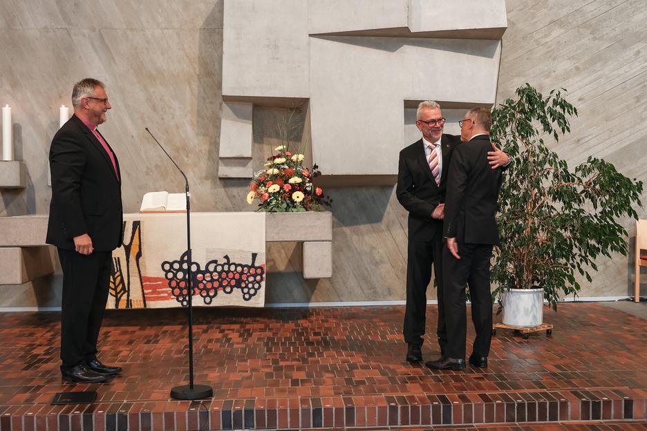Auch seinen Nachfolger Markus Jung segnete der Bischof. Jung übernehme eine große Verantwortung und könne sich sicher sein, dass „Mitarbeitende an allen Standorten diese Leitungsverantwortung mit dir teilen“. „Viele werden dich begleiten, vor allem im Gebet“, betonte Philipp.