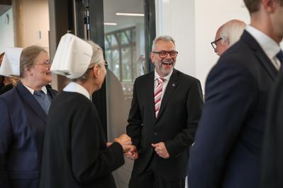 Dr. Rainer Hutka, Ministerialdirektor im Bayerischen Sozialministerium, würdigte die Rolle des scheidenden Direktors in einer herausfordernden Zeit. Niethammer habe dafür gestanden, dass Martha-Maria ein verlässlicher Partner in der Gesundheitslandschaft ist und gezeigt, dass medizinische Versorgung und christliche Werte zusammengehören. Jung wünschte er die Fähigkeit, auch in herausfordernden Zeiten nicht die Menschlichkeit aus den Augen zu verlieren.