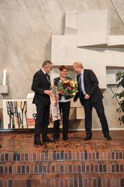 Diakoniepräsidentin Dr. Sabine Weingärtner hob auf die Namensgeberinnen Martha und Maria ab, von denen die Bibel erzählt: Die Schwestern hatten Jesus zu Gast und gerieten in Streit darüber, ob es besser sei, Jesus zuzuhören oder ihn zu versorgen. Beides sei wichtig, sagte Jesus: Helfen und Hören, eben das Leitmotto des Diakoniewerks Martha-Maria. „Wenn Martha und Maria Männer gewesen wären, hätten Sie vielleicht Hans und Martin geheißen“, sagte Weingärtner an Dr. Niethammer gerichtet. „Sie waren stets ein Hörender und ein Helfender.“ Die Gesellschaft brauche Menschen, die handeln und Menschen, die zuhören – vor allem in einer Zeit, in der zunehmend Menschen marginalisiert werden. Sie kritisierte Angriffe auf die Menschlichkeit und die Abwertung von ganzen Gruppen.